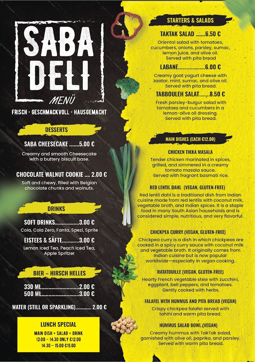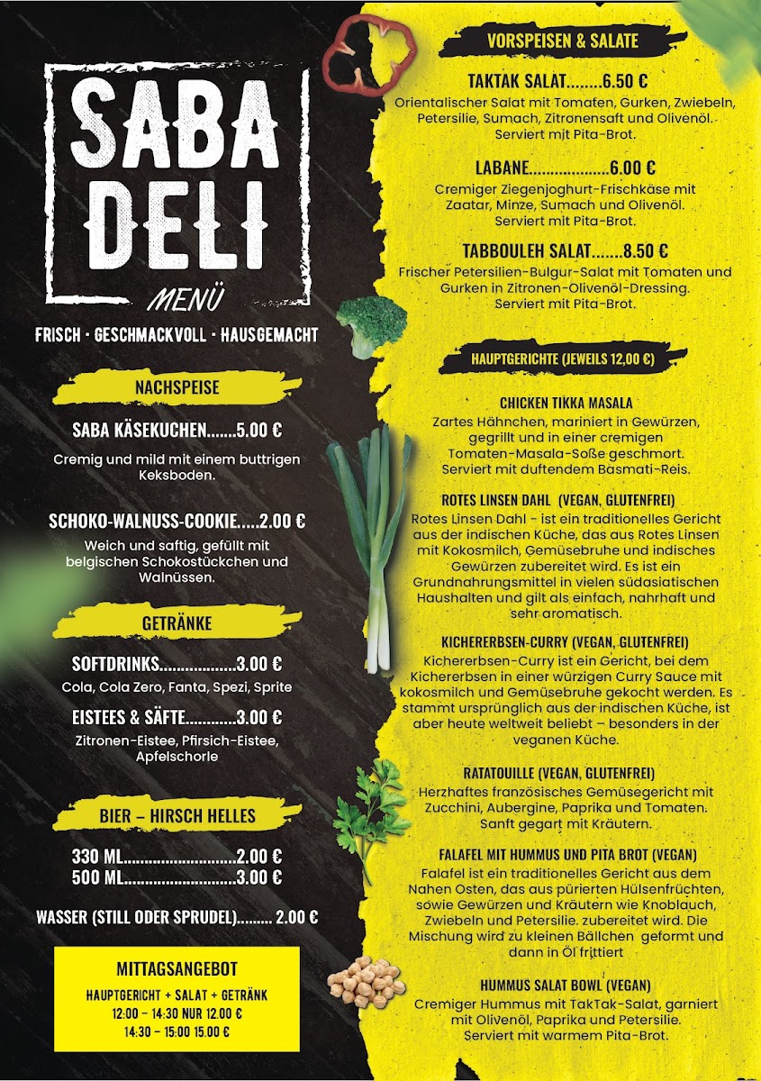 Looking for a place where great food meets a cozy atmosphere? You’ll find it all at Saba Deli Menu in Konstanz. Located at Wallgutstraße 8, this spot is the perfect go-to for a delicious meal in a relaxed setting. Whether you’re craving hearty deli classics or lighter bites, the menu offers something for everyone. From savory sandwiches stacked high with fresh ingredients to flavorful soups and salads, every dish is made with care and packed with taste. The variety of options ensures that each visit is a new experience, with a perfect pick for any mood or occasion. The charming vibe of the place makes it an ideal spot to enjoy a meal with friends or unwind solo.